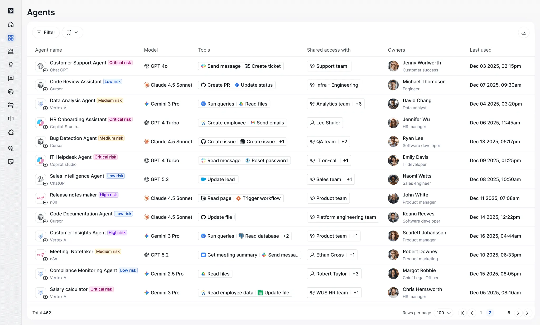 Along with your human and non-human identities, you can discover which agents are in use, who has access to them (humans or other agents), and what those agents have access to.