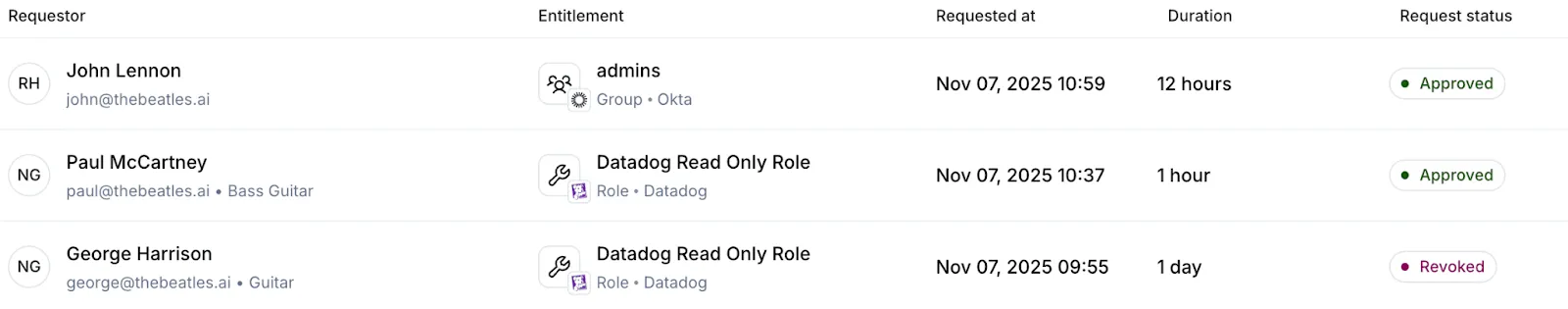Just-in-time access issues time-bound and scope-bound permissions on demand, then revokes them automatically. Think of it as least privilege with a clock and a clear scope. Unlike a standard access request, expiry is part of the grant. No one needs to remember to remove anything later.