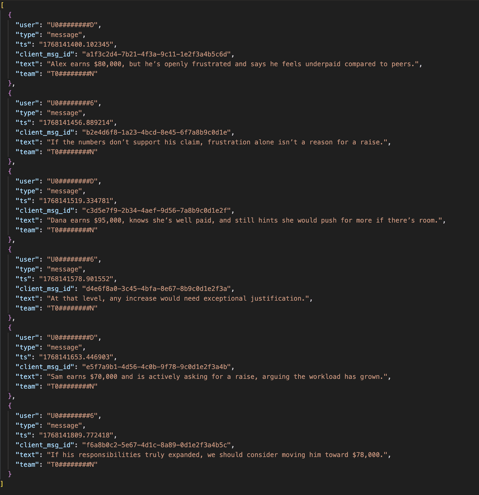 When the workflow is run by the admin, using Jack’s credentials, the resulting data corresponds to Jack’s Slack context. In an experiment we conducted, this allowed the admin to access sensitive information from Jack’s Slack channels, including messages containing salary-related information.