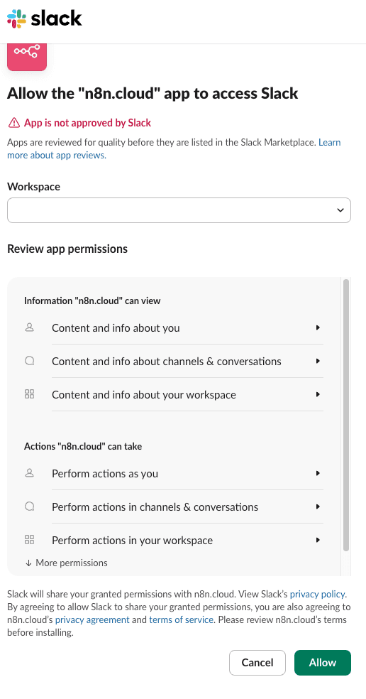 A user authorizes n8n to access Slack via OAuth